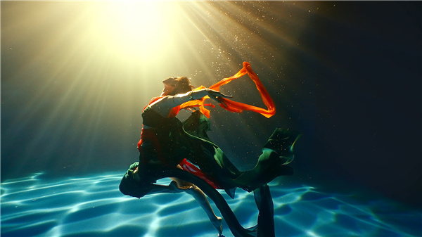 Featuring the goddess of Luo River – a mysterious beauty best known in the poetry of Cao Zhi during the Three Kingdoms period, the dancer Haohao He, a former synchronized swimmer, recreated the elegance of this ancient Chinese goddess.