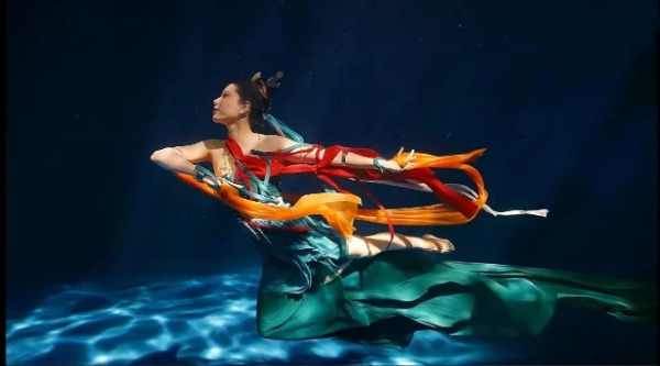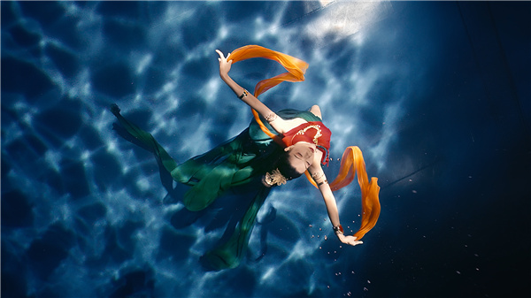 Featuring the goddess of Luo River – a mysterious beauty best known in the poetry of Cao Zhi during the Three Kingdoms period, the dancer Haohao He, a former synchronized swimmer, recreated the elegance of this ancient Chinese goddess.