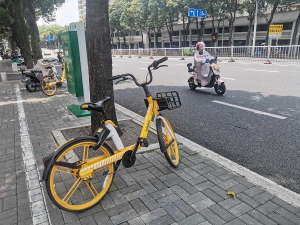 An intelligent Bluetooth device is introduced in Fuzhou, Fujian province, to regulate the parking of shared bikes and keep the city tidy and orderly. [Photo by Lin Han / for chinadaily.com.cn]