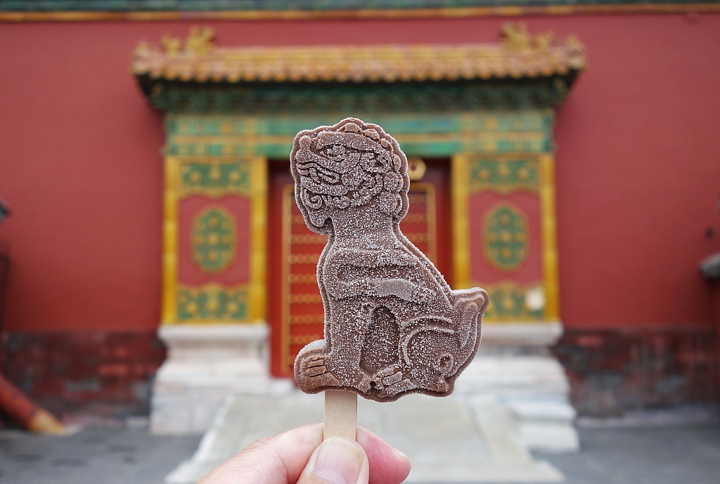 To celebrate the 94th anniversary of the founding of the Palace Museum in Beijing in 2019, the museum released assorted cultural and creative products, among them an ice popsicle that has gained a lot of popularity among visitors. It was inspired by a beast sitting on the roof ridge of the museum’s watchtower. The ice pop costs 10 yuan ($1.55), and comes in the flavors of mango, chocolate, and milk.