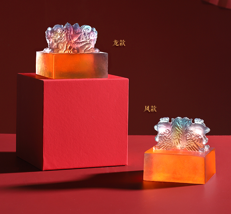 As the phoenix was an auspicious totem in ancient China, the designer combined a phoenix motif from a seal and a mirror together to make the two soaps with essential oil look like colored glass.