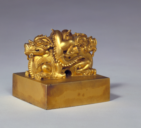 A gold seal with a dragon-shaped knob was one of the most important imperial seals. [Photo/en.dpm.org.cn]