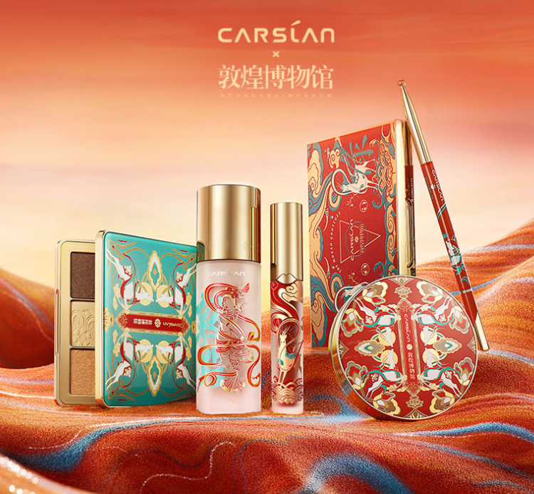 The image of the nine-color deer is printed on the cosmetics products co-designed by the Dunhuang Museum and Carslan. [Photo/Official Tmall shop page of the Dunhuang Museum]