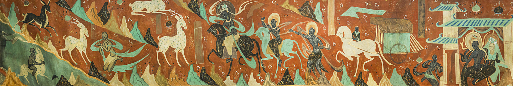 The mural of the nine-color deer in Dunhuang Mogao grottos. [Photo/VCG]