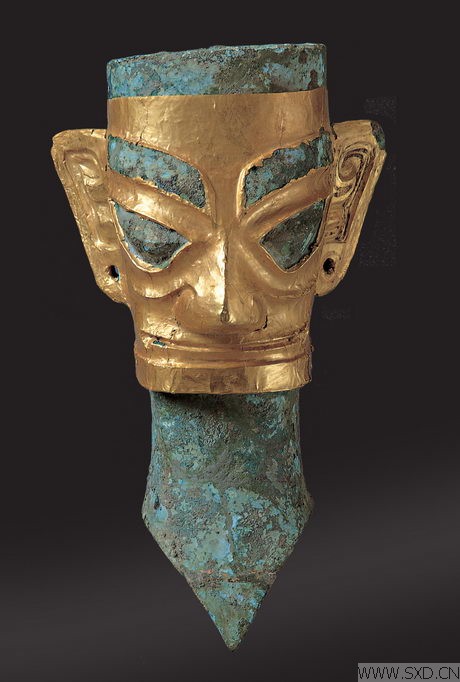 A gold face mask unearthed from the Sanxingdui Ruins site [Photo/sxd.cn]