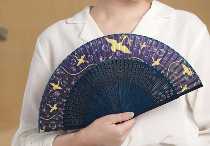 A folding fan is a "cool" travel accessory in hot weather as it’s easy to carry and needs no electricity. The Shaanxi History Museum recently rolled out a traditional Chinese folding fan with the motif of the mythical bird luan. The design was inspired by an item in the museum’s collection, a mirror with four gold mythical birds symbolizing happiness and a better life. Against a background color of sapphire blue, the folding fan exudes a graceful and noble charm.