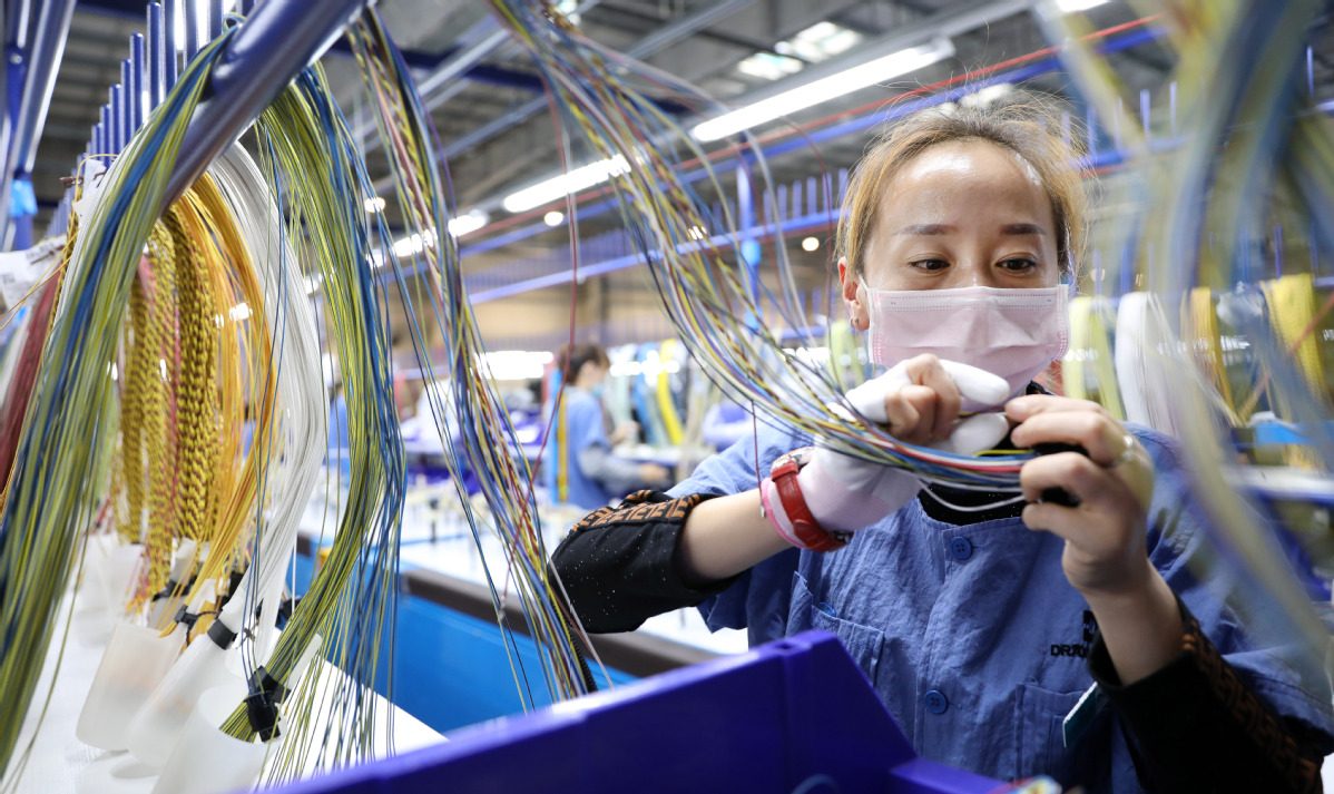 An employee assembles a wire harness at the workshop of Draexlmaier (Anshan) Wire Harness System Co in Anshan, Liaoning province. [Photo/XINHUA]