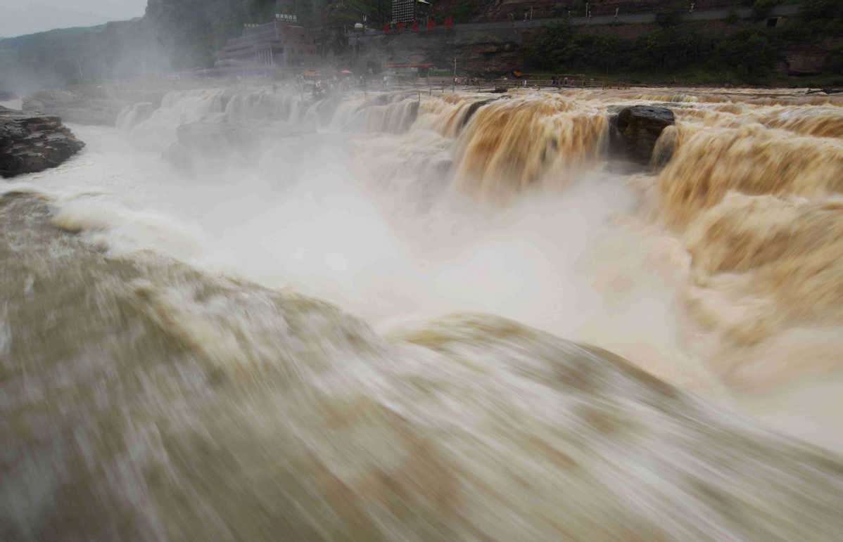Hukou Waterfall in Jixian county, Shanxi province, is providing a spectacular scene for tourists to view rushing water being made a clear distinction between purity and impurity. [Photo by Lyu Guiming/for chinadaily.com.cn]