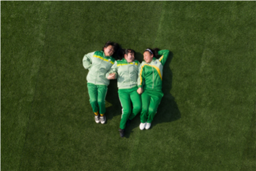 In March, Cai Dantong (C) and classmates at Chongqing Special Education Center have their graduation photos taken on the playground. [Provided to chinadaily.com.cn]