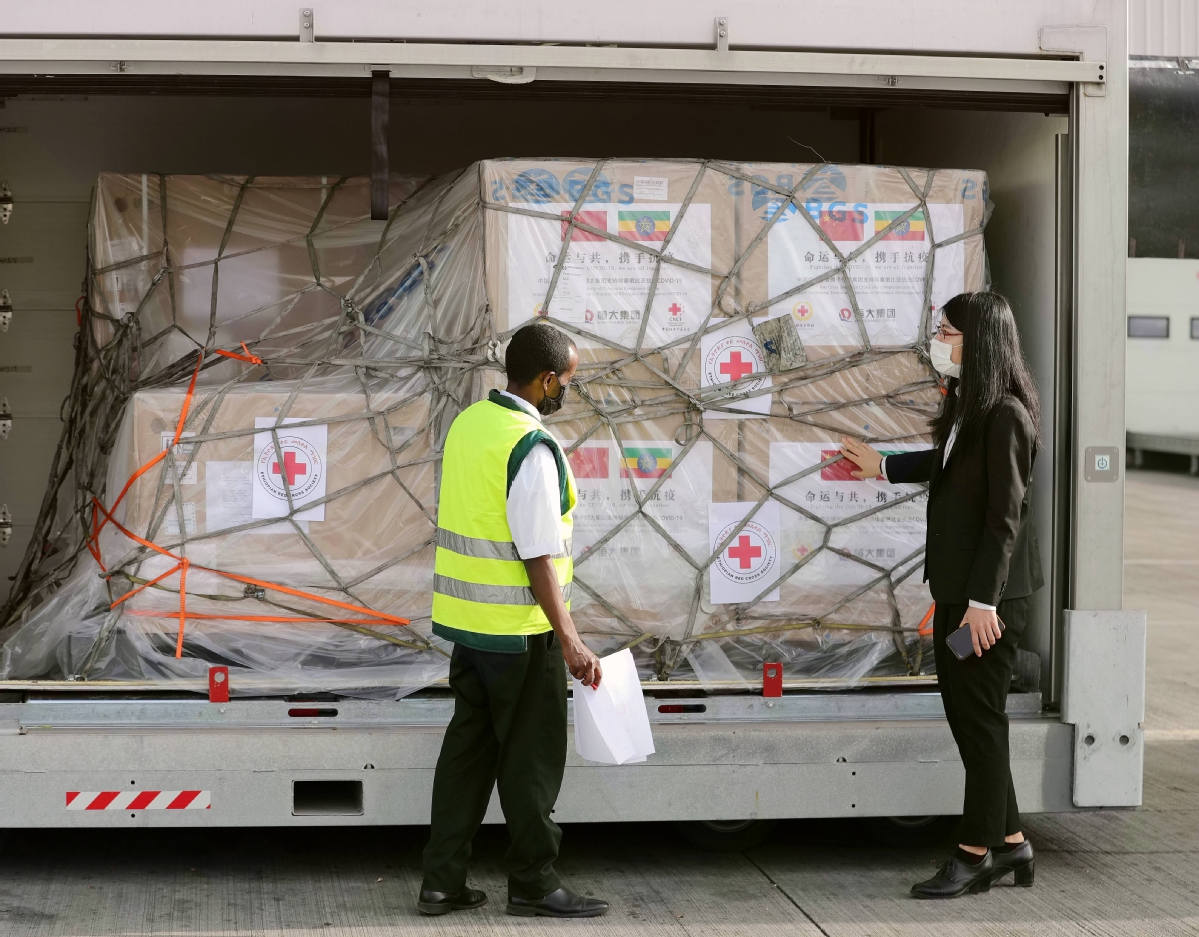 A staff worker checks a shipment of COVID-19 vaccines donated by the Red Cross Society of China in Addis Ababa, Ethiopia, on Saturday. [Photo/Xinhua]