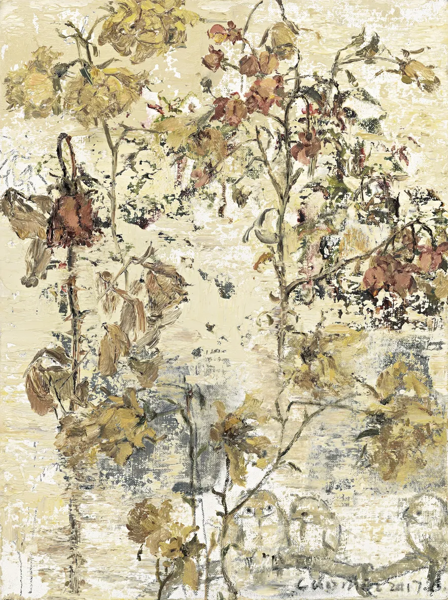 In her work Luo passionately depicts blooming scenes of varieties of flowers and plants, drawn from her memories of childhood spent in southern Sichuan province where floral blossoms are not uncommon all year around.