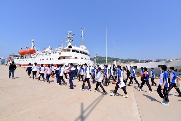 In addition, two marine research ships received visitors from primary and middle schools at their home port in Qingdao.