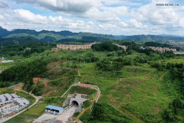 Aerial photo taken on June 14, 2021 shows an external view of the Yanjiazhai tunnel of the Guiyang-Nanning high-speed railway in Dushan county, Southwest China's Guizhou province. [Photo/Xinhua]
