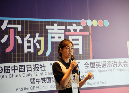 A high school student from Guizhou takes part in the regional finals of the "21st Century Cup" National English Speaking Competition. [Photo by Xiao Yangting/ provided to chinadaily.com.cn]