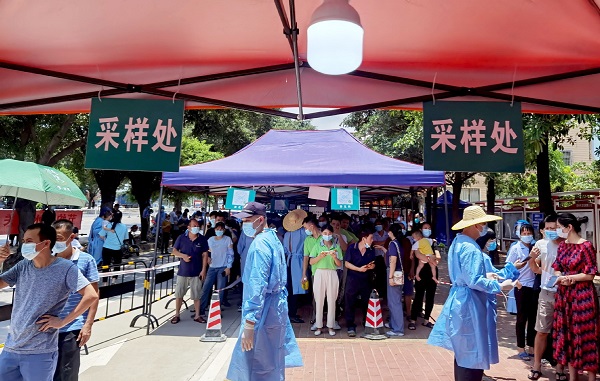 A 19-year-old student surnamed Jia tested positive for COVID-19 on Sunday, following mass testing covering four city subdistricts-Nancheng, Dongcheng, Wanjiang and Guancheng-and Machong township between Friday and Saturday after the city reported a case on Friday.