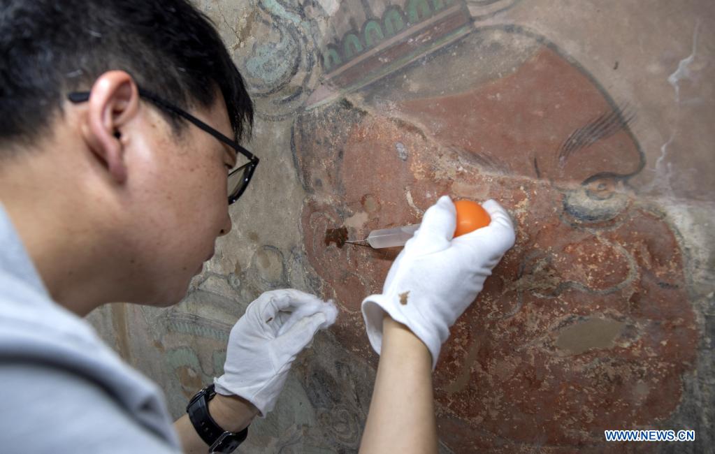 The restoration of Yuan Dynasty (1271-1368) murals in Yongle Palace, the largest Taoist temple in China, has started, said the Yongle Palace mural art museum.