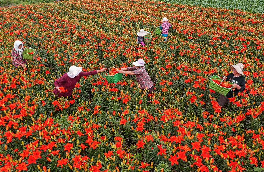 Farmers were photographed collecting lilies at a plantation in Rongcheng, Weihai, East China's Shandong province, on June 18, as the flowers are currently in full blossom.