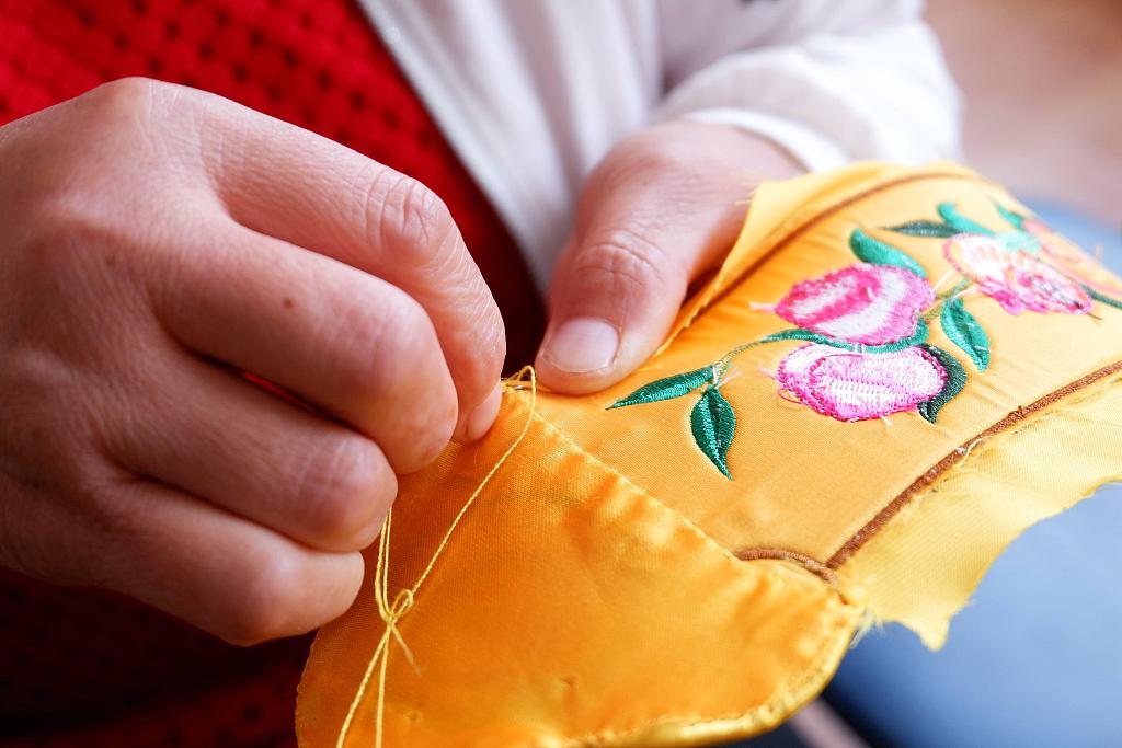 One of the most distinctive folk handicrafts of Qinghai province and a national intangible cultural heritage, Tu ethnic embroidery works reflect much of their daily life through a rich array of products which can be divided into two major categories: daily accessories and religious embellishments. Collars, sleeves, pillows, hair-bags, pouches, socks, aprons and purses, all can be embroidered with patterns with rich ethnic cultural connotations, including peaches, peonies, pomegranate flowers and lions playing with colored balls. The religious embroidery works are usually used to adorn Buddhist statues, temple halls, lama headwear and to make thangka.