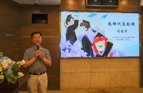 Yan Dexue, associate professor from ECNU's School of Advanced International and Area Studies, wished the graduates all the best and gave "colorful rope" as a graduation gift to all students, symbolizing good health and blessings.