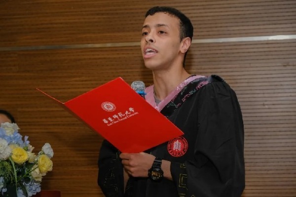 On June 18, 2021, a farewell ceremony for international students at East China Normal University (ECNU) was held in the Yifu Building on Zhongbei campus. More than 100 graduates participated in the ceremony, and the students who could not return to school also shared the bittersweet joy of graduation with their classmates via an online Zoom meeting.