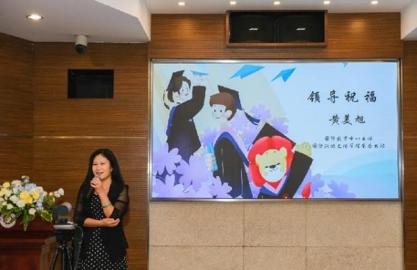 Huang Meixu, director of the Global Education Center and Secretary of the Party Committee of the School of International Chinese Studies, delivered his warmest graduation wishes, and also expressed his most sincere regret that all the students who are currently abroad couldn't be there.