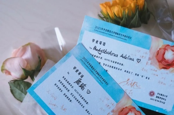 The Global Education Center also prepared graduation gifts with ECNU shoes, flowers and greetings cards with all teachers' signatures.