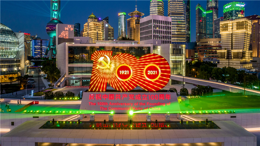 On the evening of June 22, 2021, Shanghai holds a light show with the theme of "Always Follow the Party" in the Bund and Lujiazui areas along the Huangpu River. Nearly 300 buildings were lit up. [Photo/IC]