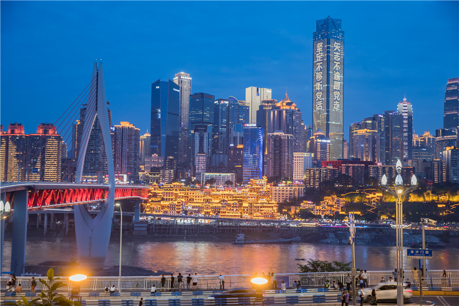 A light show to celebrate the 100th anniversary of the founding of the Communist Party of China (CPC) is held in Chongqing on the evening of June 22, 2021. [Photo/IC]