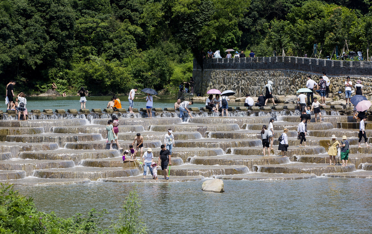 Visitors enjoy themselves at Yulin dam in Beilun district, Ningbo, East China's Zhejiang province, on June 24, 2021. [Photo/VCG]