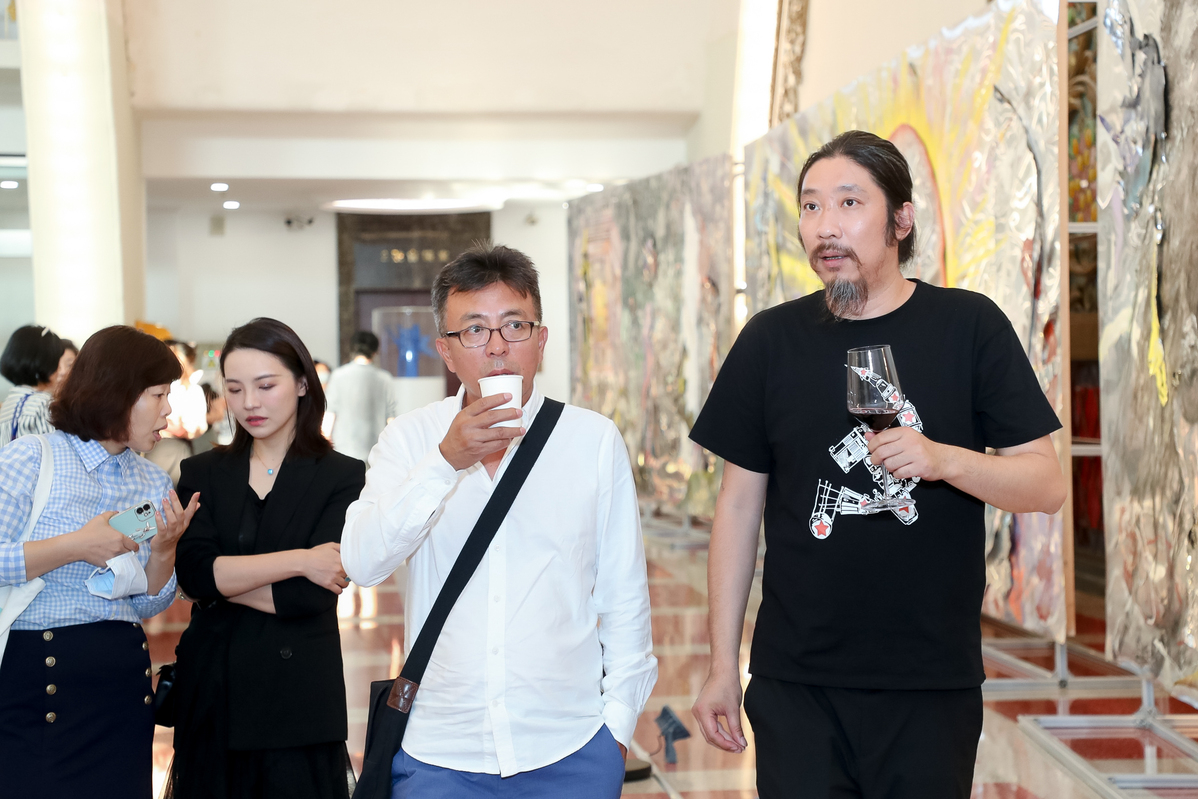 Artist Liu Xiadong (left) and Curator Bao Dong at the exhibition. [Photo provided to China Daily]