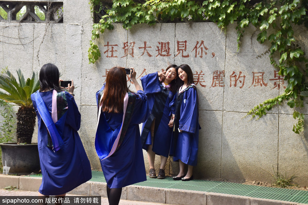 Graduates from the University of International Business and Economics pose for photos on June 19, 2019. [Photo/Sipa]