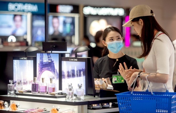 A tourist shops at a duty-free store in Hainan province. [Photo by Meng Zhongde/For China Daily ]