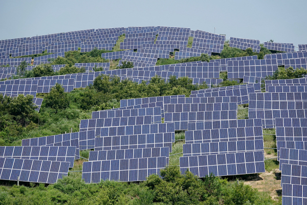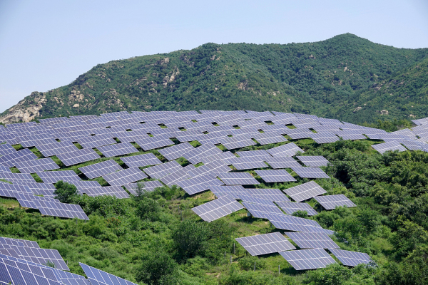 A mountain in Huili town, Fushan district is covered with photovoltaic panels. [Photo/VCG]