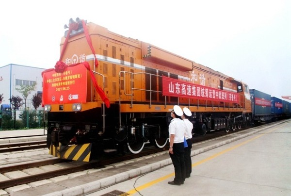 Operated by Shandong Hi-speed Group, the train carried 100 standard containers of daily necessities, such as small household appliances, household goods, kitchenware, lamps, fishing gear, tents, and umbrellas, worth about $4.3 million.