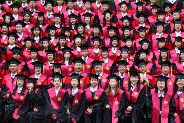 Graduates take group photos on July 3, 2021. [Photo by Zhu Xingxin/chinadaily.com.cn]