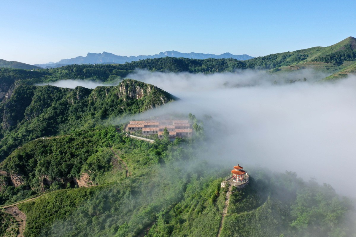 Aerial photo taken on July 3, 2021, shows a sea of clouds at Tianhe Mountain scenic spot in Xingtai city, North China's Hebei province. Cloud and mist float amid the lush greenery, unveiling a picturesque landscape. [Photo/Xinhua]