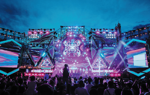 With the theme of space travel, the 2021 Shanghai Happy Valley EV Music Festival, which runs to Sept 12, is bringing people excitement through a series of activities featuring natural light displays, disco, cyberspace and e-sports.