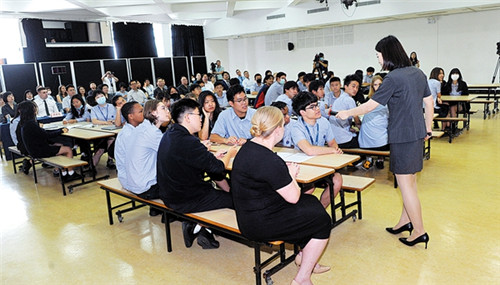 During the hourlong class, Xu Li, a judge who specializes in family disputes at Changning District People's Court, talked about basic legal frameworks and knowledge of the law that may be relevant to the daily lives of the 10th-grade students at Yew Chung International School in Shanghai.