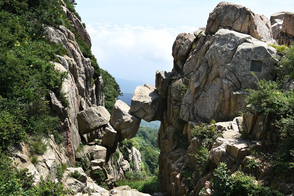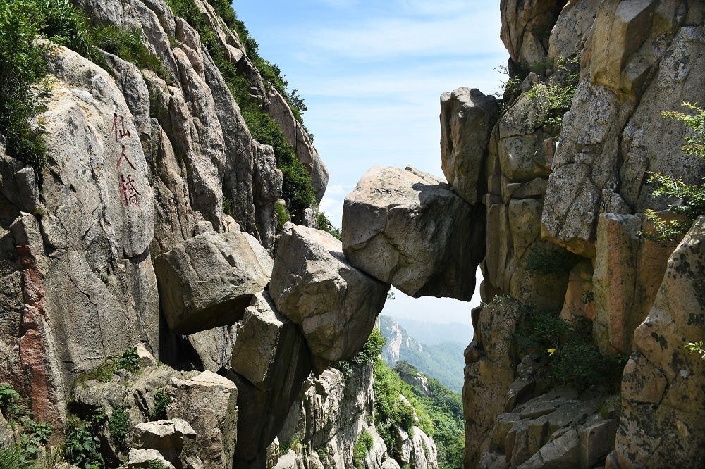 Located to the west of Zhanlu Terrace on Taishan Mountain, Shandong province, the Fairy Bridge is a natural wonder composed of three huge boulders suspended between the cliffs. But be careful, it is definitely not for us mortals to cross. Instead, it is only for the deities and the fairies...