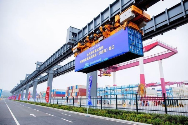 An air-track intelligent transport system was unveiled at a port in Qingdao, Shandong province, as its demonstration section went into operation on Wednesday. The system represents a significant step forward in China's construction of intelligent and environmentally friendly ports.