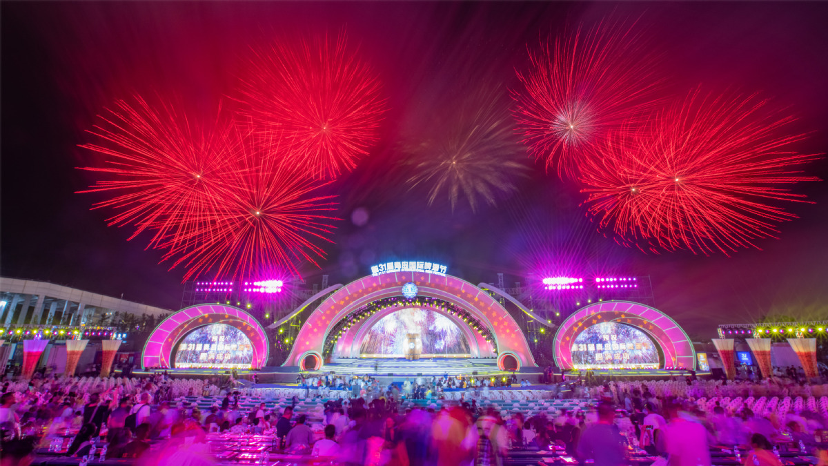 Firework is set off during the opening ceremony of the 31st Qingdao International Beer Festival on Friday evening. [Photo provided to chinadaily.com.cn]