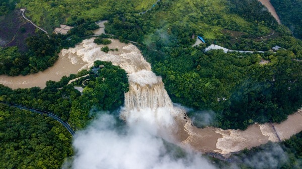Huangguoshu Waterfall has entered its high flow season due to heavy rainfall. [Photo by Chen Xi/Provided to chinadaily.com.cn]