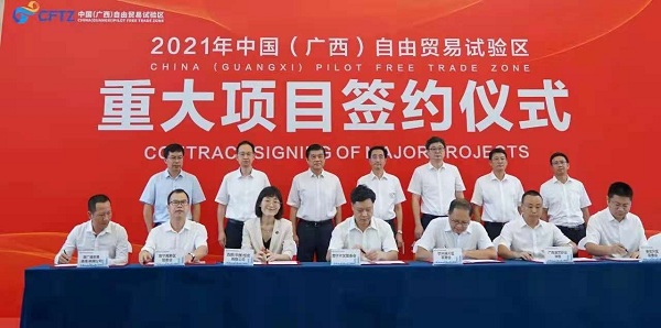 A total of 17 projects were signed Sunday in the pilot free trade zone (FTZ) of south China's Guangxi Zhuang Autonomous Region with a total contractual investment of 13.1 billion yuan (about 2 billion U.S. dollars).