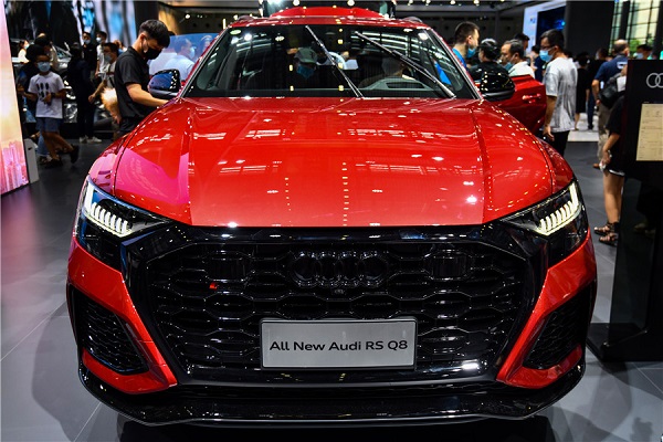 An All New Audi RS Q8 is on display at the Guangdong-Hong Kong-Macao Greater Bay Area International Auto Show in Shenzhen, South China's Guangdong province, on July 18, 2021. [Photo/IC]