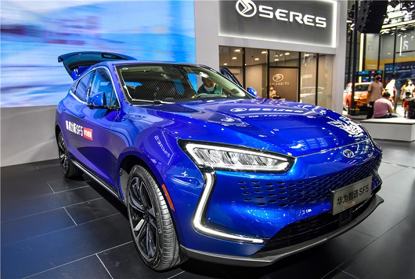 A Seres SF5 is on display at the Guangdong-Hong Kong-Macao Greater Bay Area International Auto Show in Shenzhen, South China's Guangdong province, on July 18, 2021. [Photo/IC]