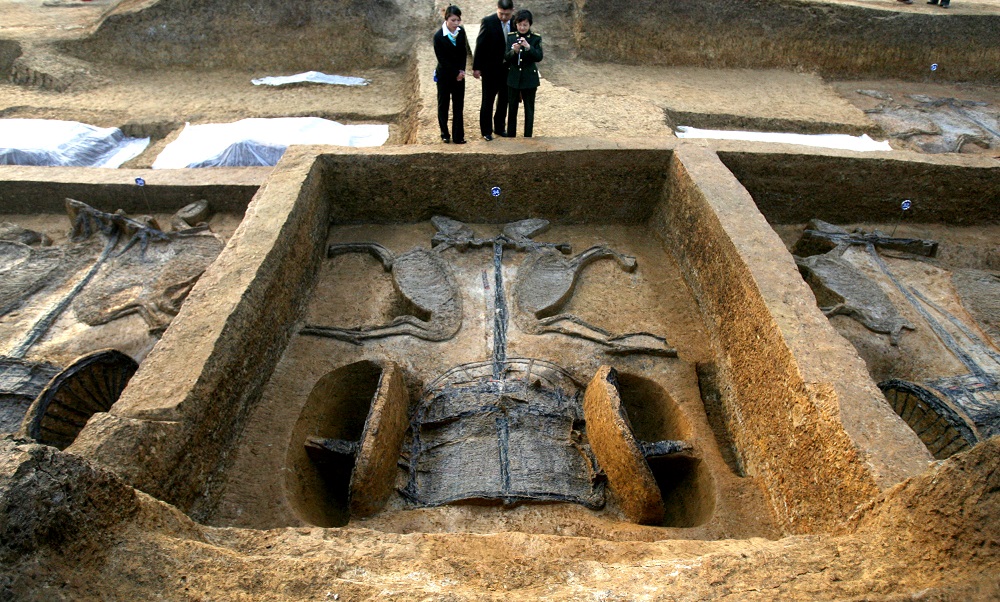 The Xiong Family Tomb is 26 kilometers south of Jinan city, the capital of the ancient State of Chu (?-223 BC). It is an imposing tomb complex for an aristocrat of the Chu State that boasts the grandest scale, the most complete and elegant of structures as well as the richest of archaeological remains from the Eastern Zhou Dynasty (770-256 BC), consisting of the main tomb and its subordinate tombs, chariots pits, sacrificial tombs and pits.