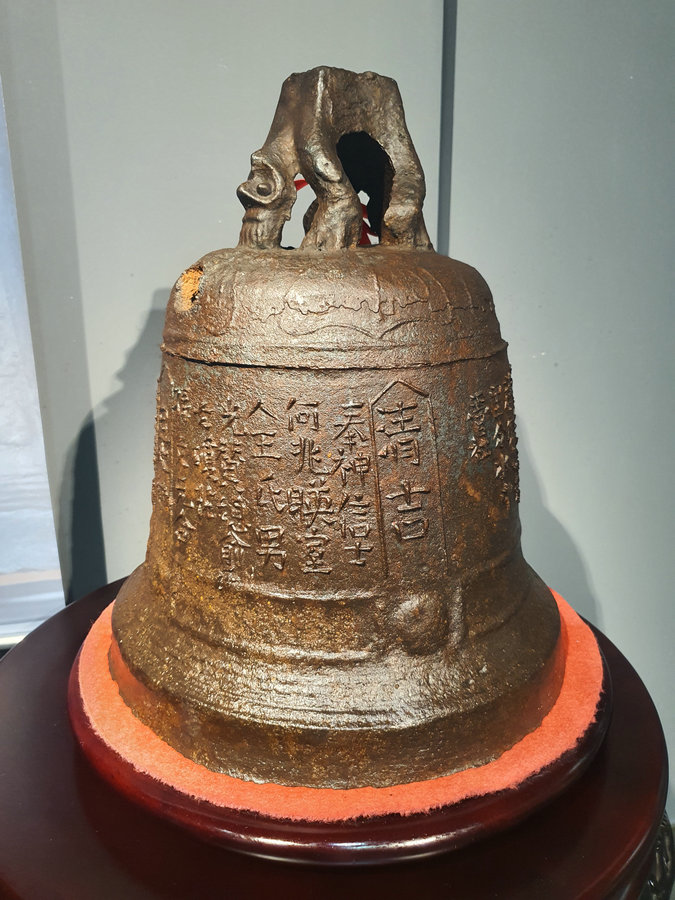 An iron bell from the Qianlong period (1711 - 1799), so far the heaviest one ever collected. [Photo by Li Yange/chinadaily.com.cn]