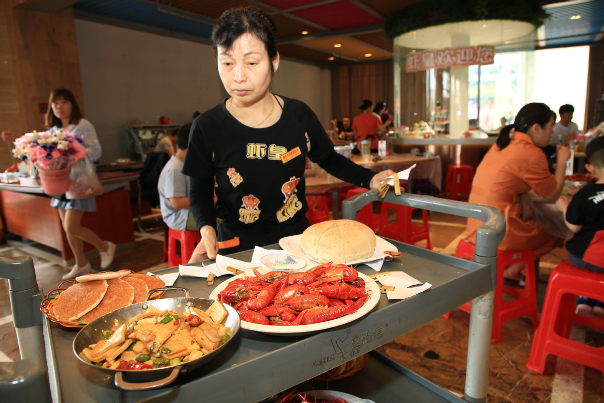 Zhang Denghua, chairman of a catering enterprise in Qianjiang, said 70 percent of their crayfish were sold via e-commerce platforms at home and abroad, including Russia and Singapore.