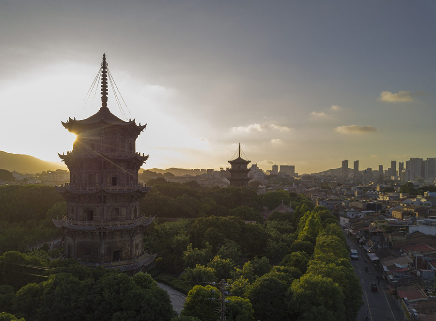 A photo taken on July 8 shows the east and west towers of Kaiyun Temple in Quanzhou. [Photo/Xinhua]