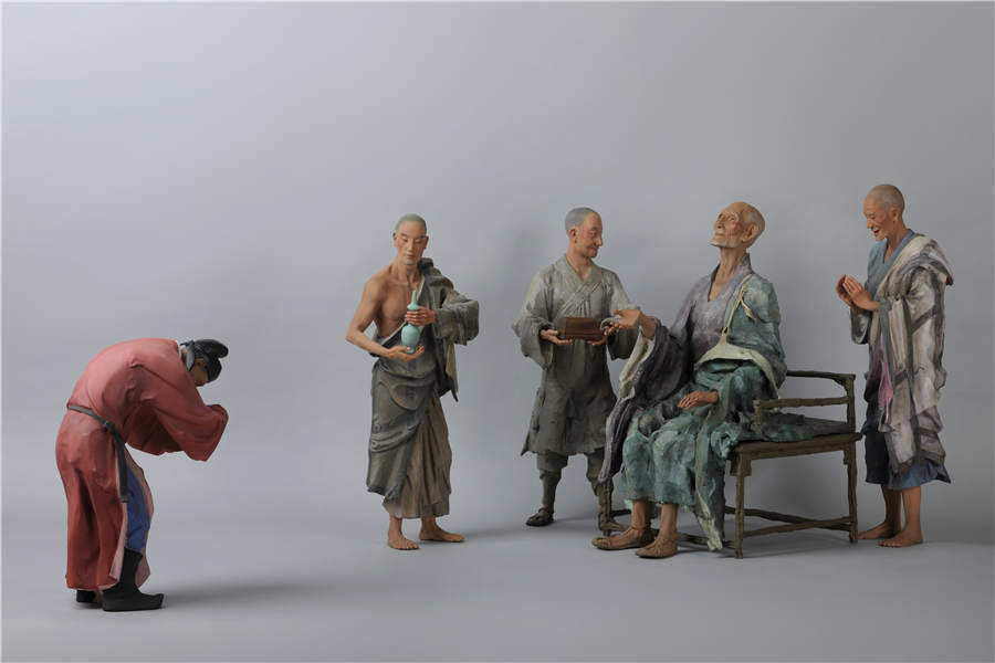 A Clay Figurine Zhang work is on display at the National Art Museum of China in Beijing. [Photo provided to chinadaily.com.cn]